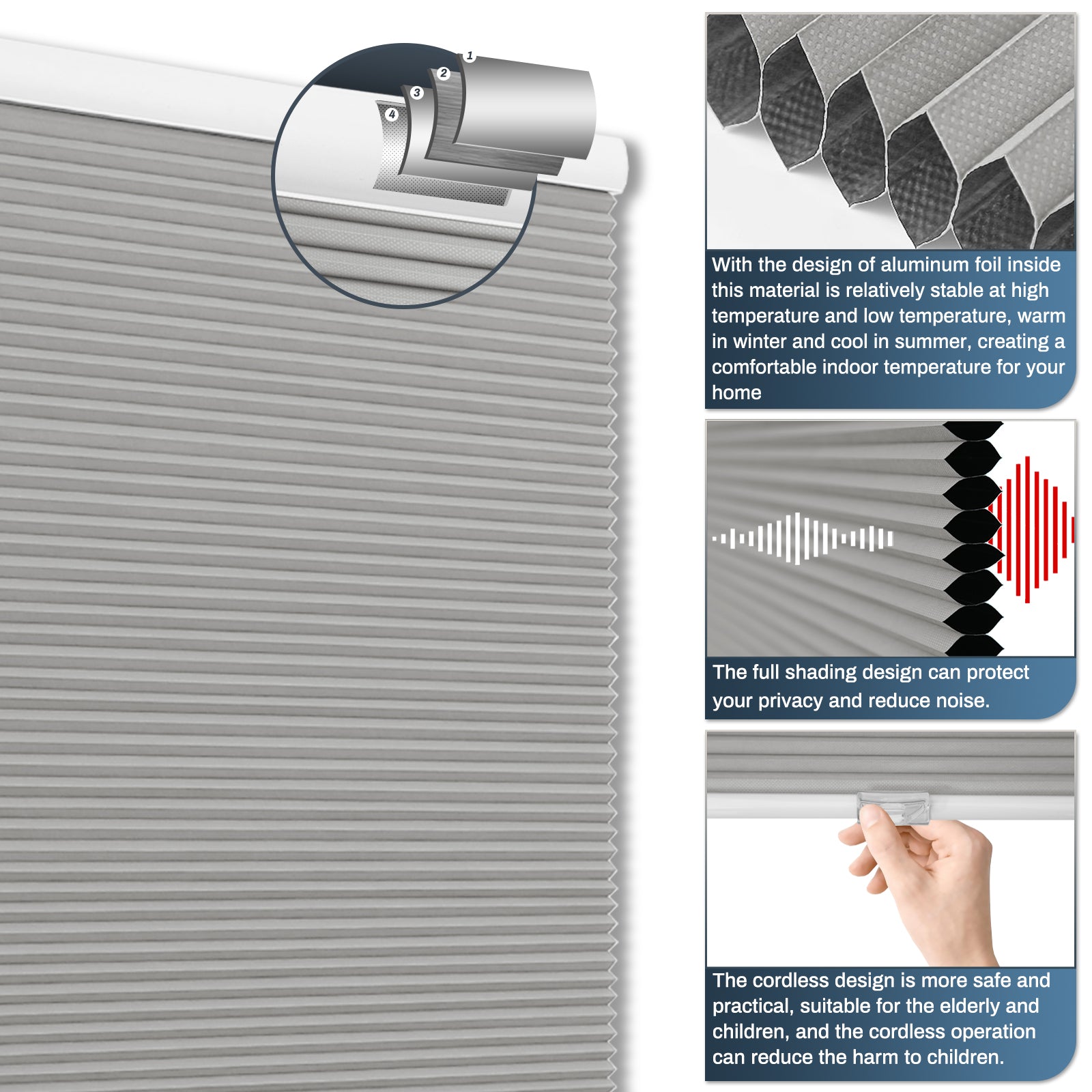 Cordless | Blackout | Free-Stop | Cellular Shades | Gray