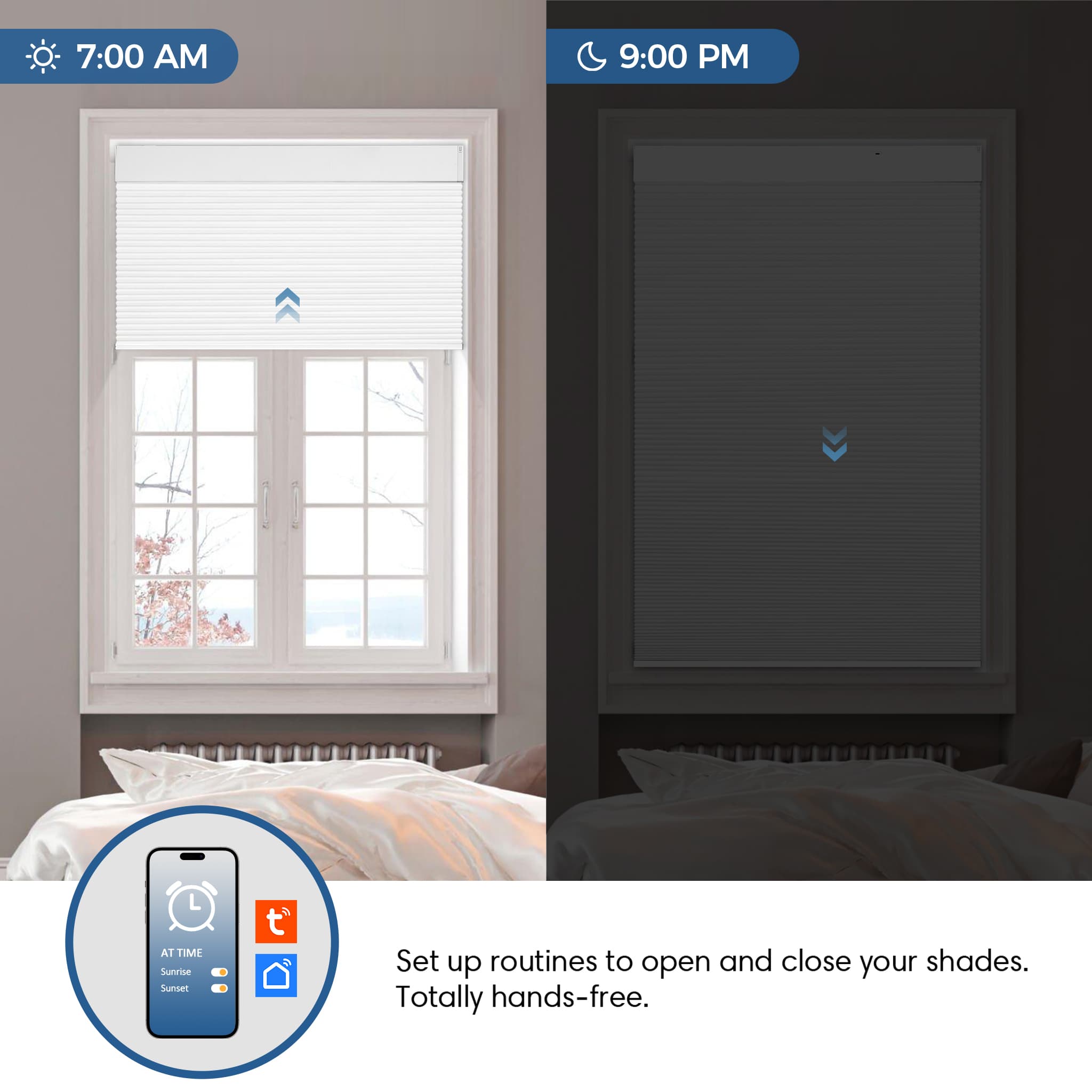 Whether you're relaxing on the couch or busy with other tasks, you can easily adjust your cellular shades with a voice command. It's the perfect way to enhance your home's comfort and security.