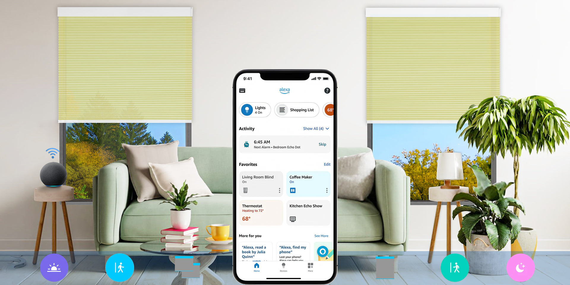 Take control of your cellular shades hands-free with Amazon Alexa or Google Assistant. Just say the word to open, close, or adjust the shades exactly as you like, making your home both smart and effortless.