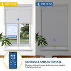 Wake up naturally as your shades gradually open in the morning, creating a gentle start to your day. Keep your home comfortable by scheduling them to close during peak sunlight hours, helping maintain the ideal temperature. At night, enhance privacy and security with automated closing, and even simulate occupancy while you're away, giving you peace of mind. With customizable schedules and routines, your shades work effortlessly to fit your lifestyle.