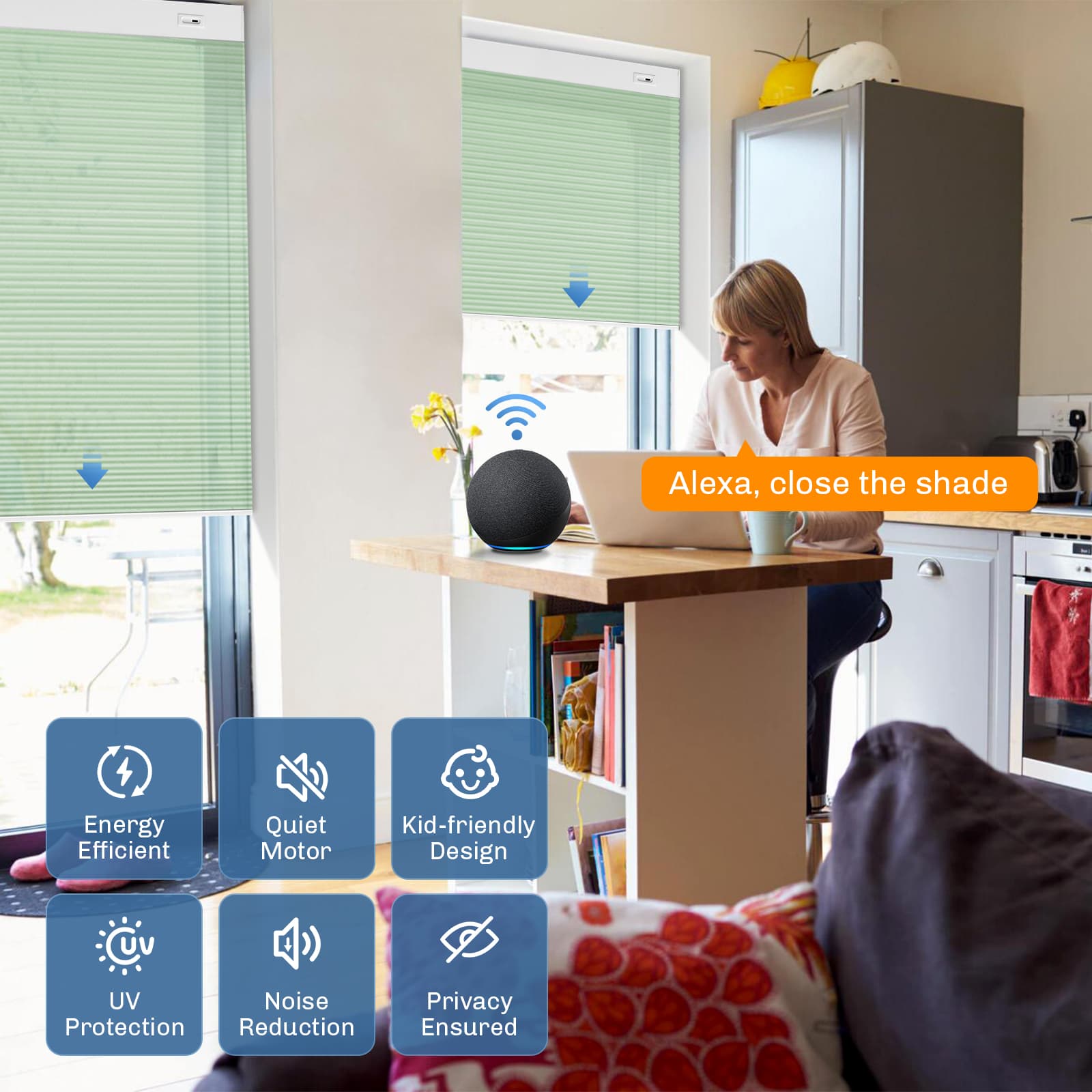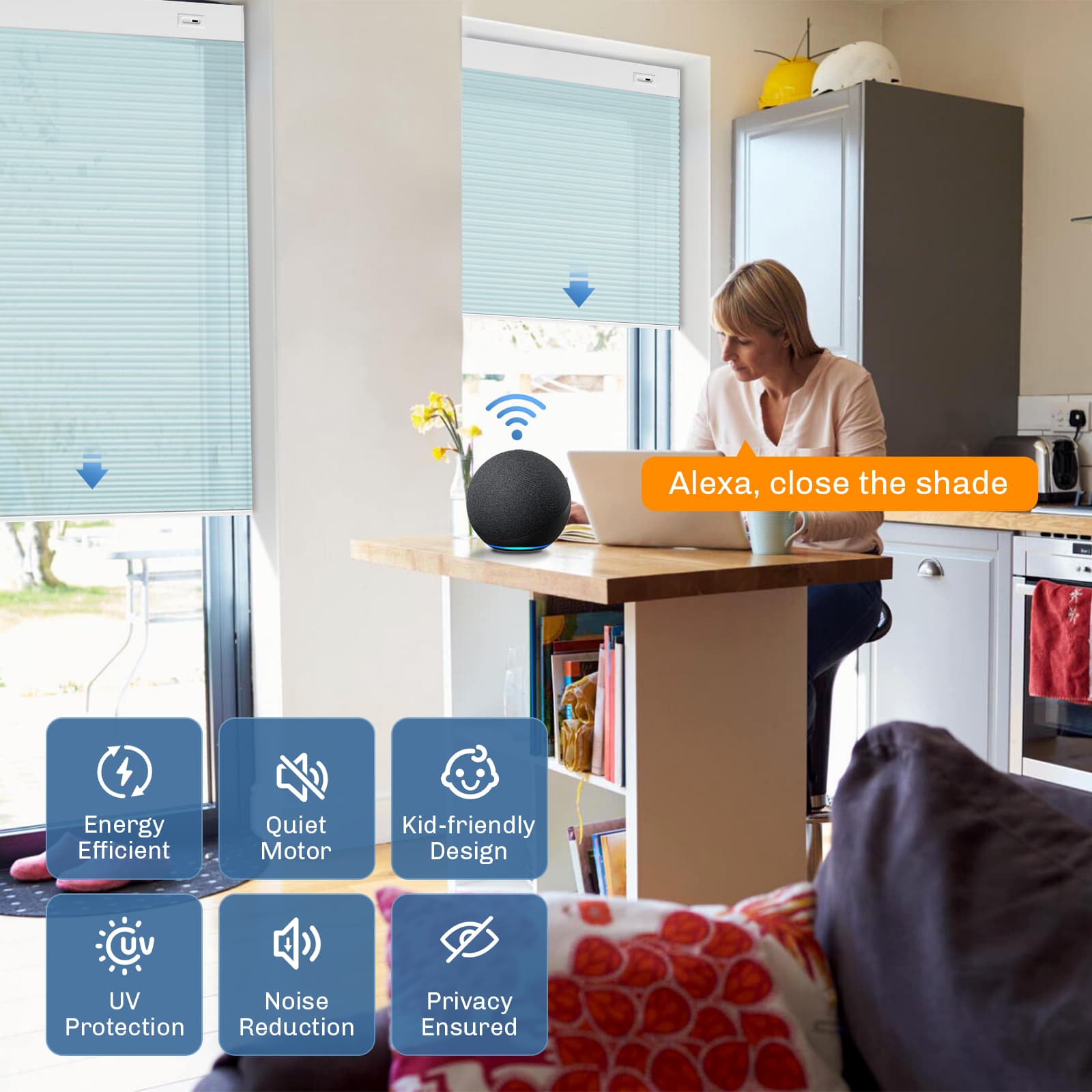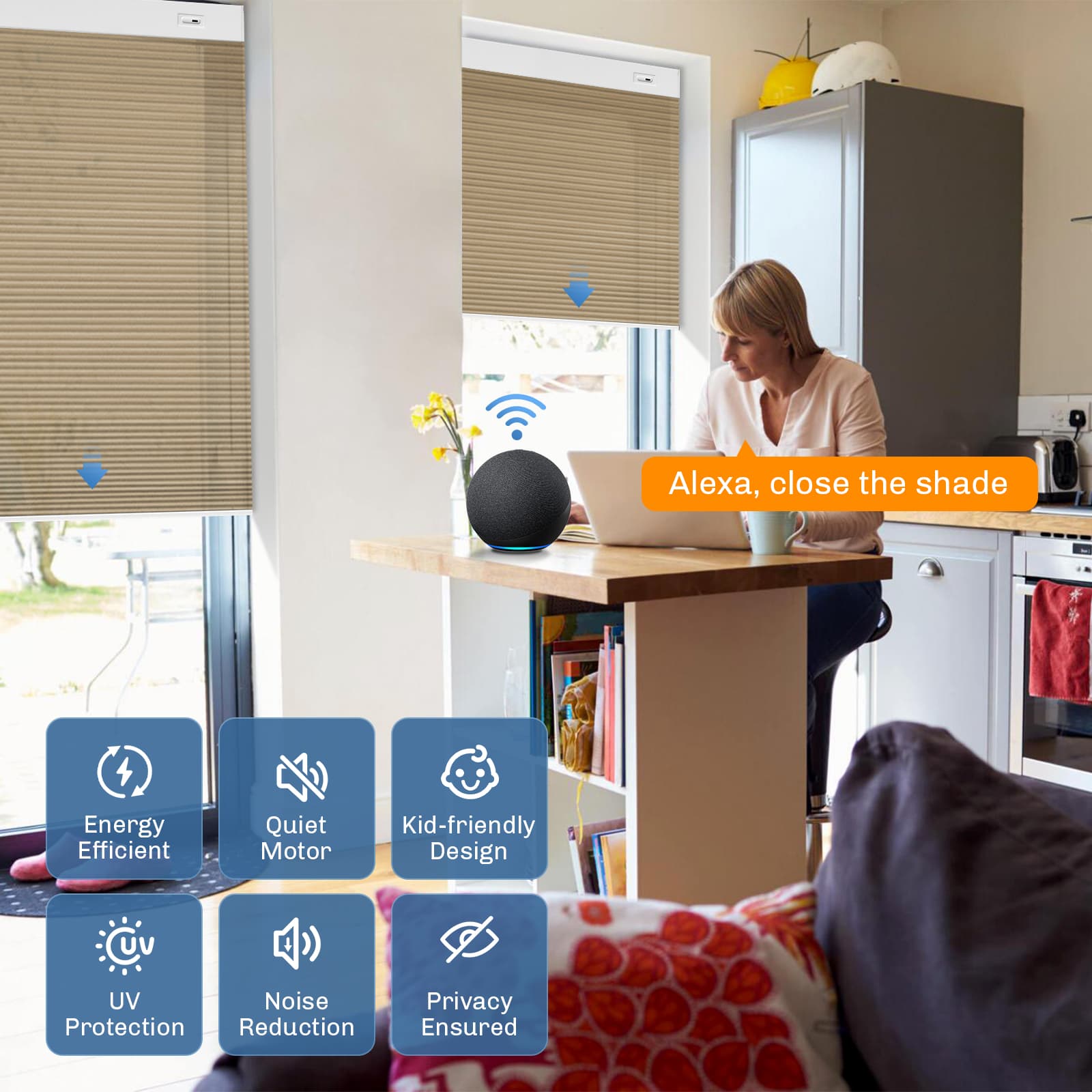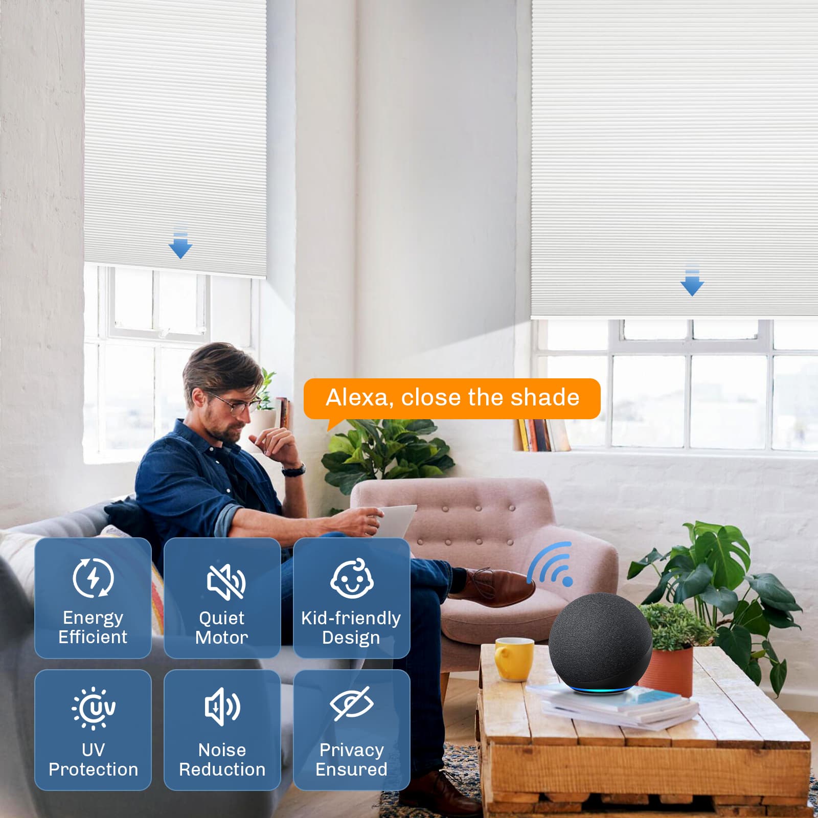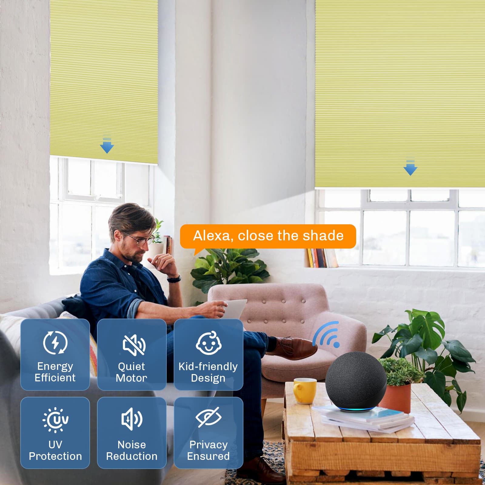 Whether you're relaxing on the couch or busy with other tasks, you can easily adjust your cellular shades with a voice command. It's the perfect way to enhance your home's comfort and security.