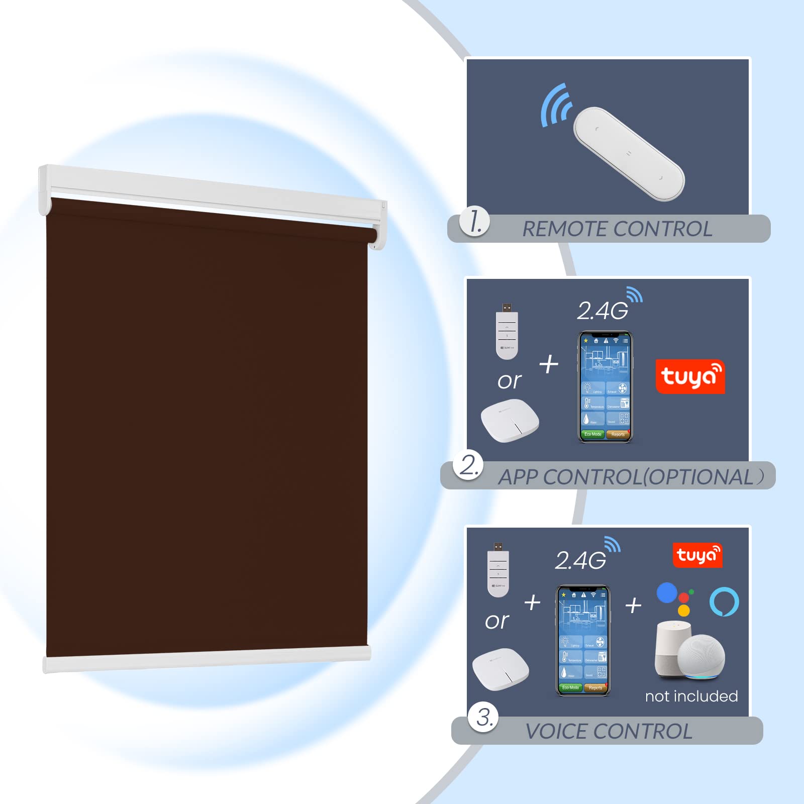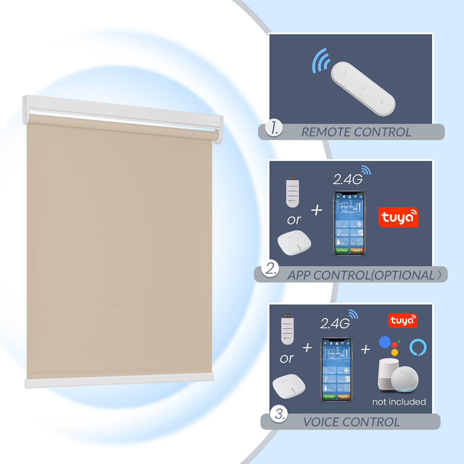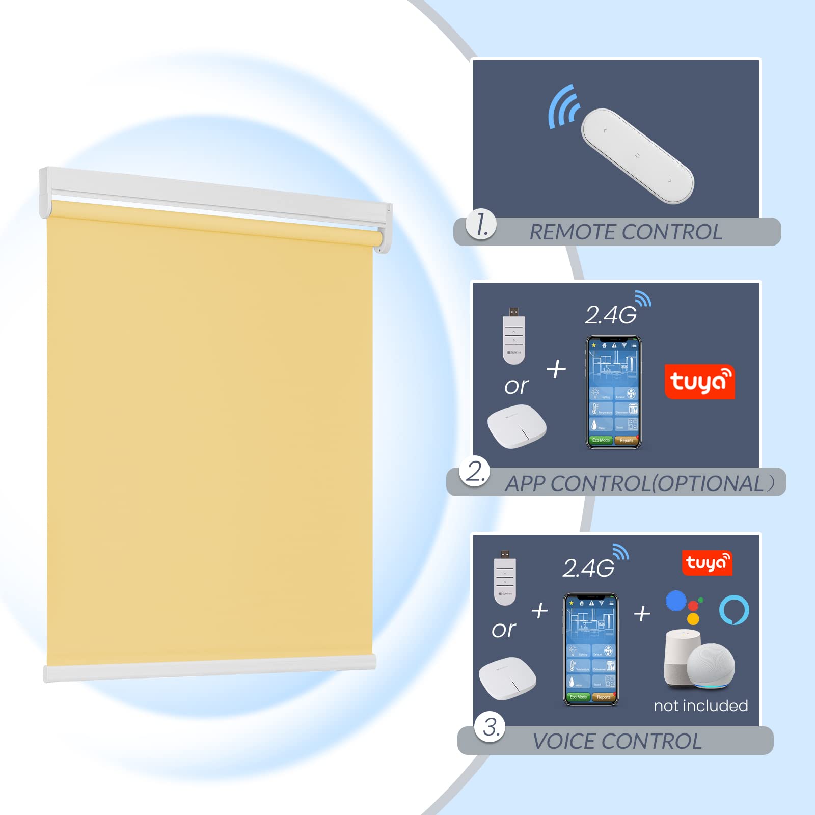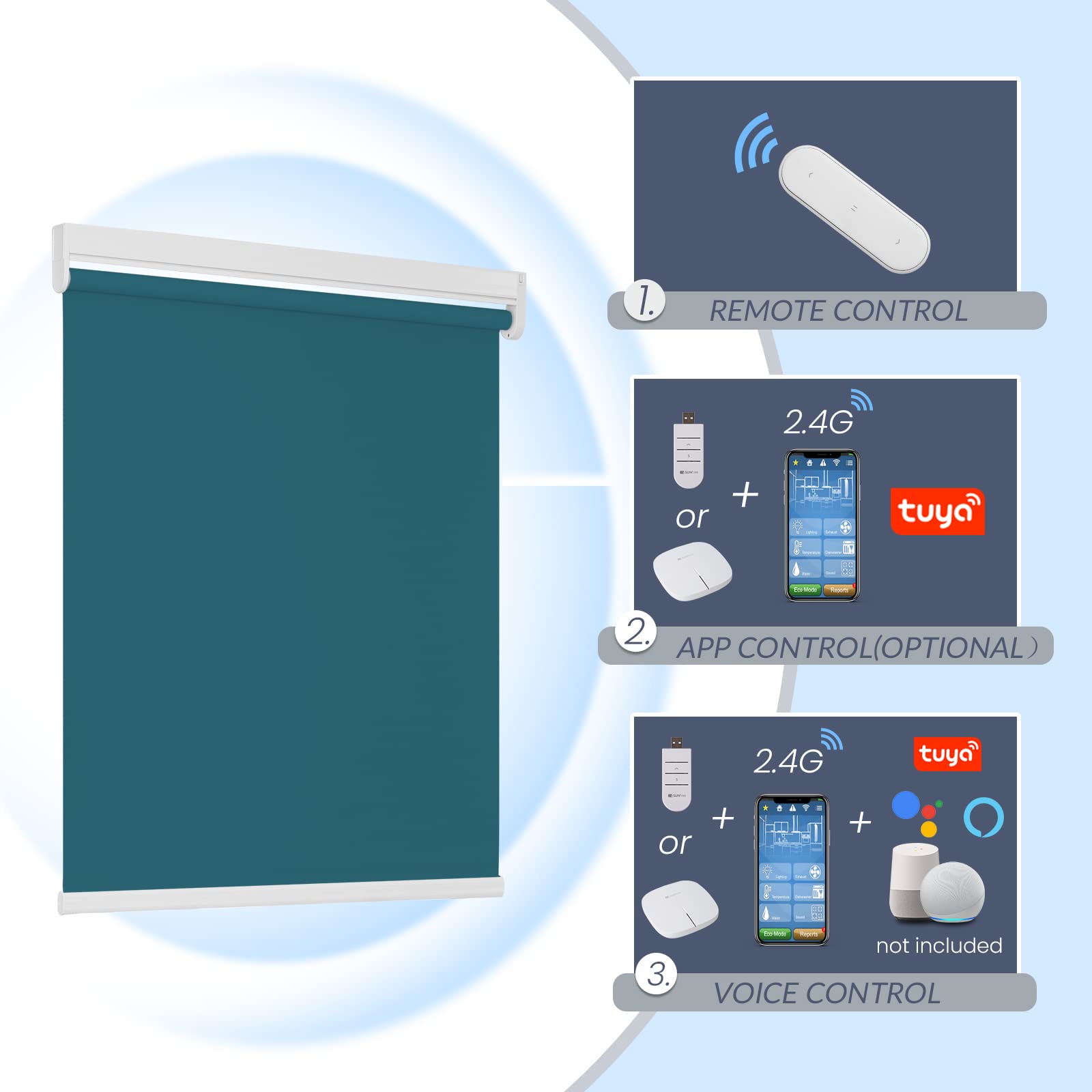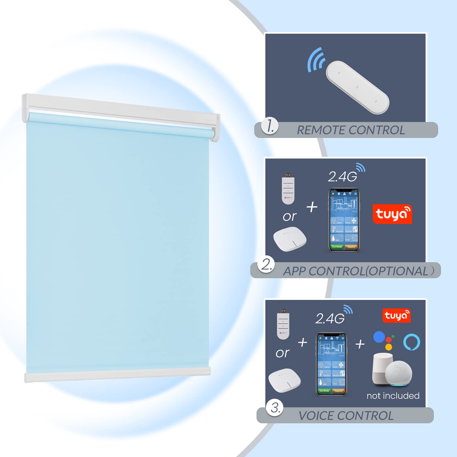 Step 3. Directly operate with the pre-programmed remote, or connect Tuya/Smart Life app for automation and voice commands if you’ve purchased the smart control options.