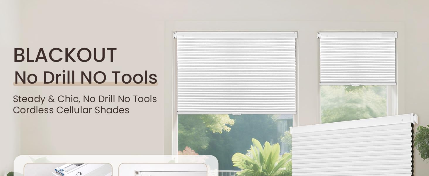No-Drill | Cordless | Blackout | Free-Stop | Cellular Shades | Customizable